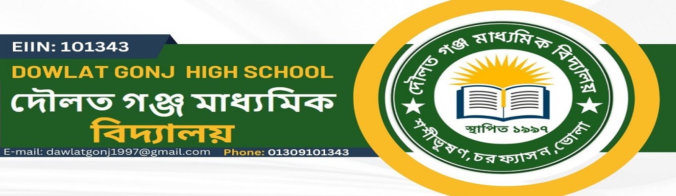 Dowlat Gonj High School is an educational establishment that is located at Paschim ewajpur Dakhin Shiba Charfesson Bhola. Its Educational Institute Identification Number or EIIN, is 101343. On 01 January, 1997, it was first put into operation.. It is a Combined sort of co-educational program.